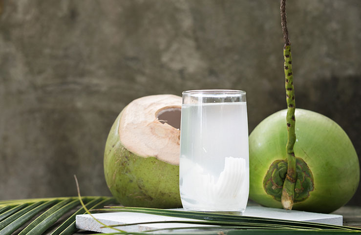 Água de coco: melhore o brilho e a elasticidade da sua pele com água de coco. Ela contém vitamina C, cálcio e potássio que hidratam a pele e ajudam a protegê-la dos danos do sol. Também é rica em vitaminas B e magnésio, o que fará com que sua pele pareça mais jovem, além de manter estáveis ​​os níveis de açúcar no sangue e ajudar na formação de massa muscular.