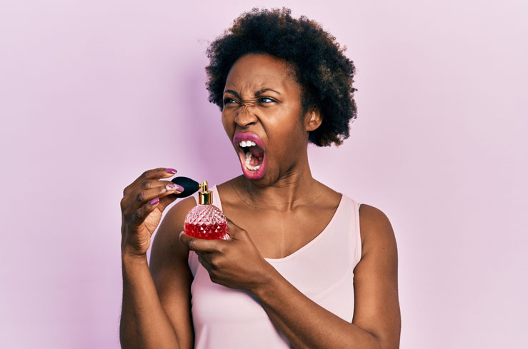 Por trás de uma simples borrifada existem os chamados compostos orgânicos voláteis, que são vapores químicos contendo moléculas de carbono que evaporam rapidamente. Os combustíveis fósseis e produtos petroquímicos contêm uma grande variedade desses compostos. Ao interagirem com a luz do sol e outras partículas no ar, podem desencadear dores de cabeça, irritação na pele ou nos olhos, asma, ataques cardíacos, derrames e câncer de pulmão. Cerca de 35% das pessoas experimentam intolerância ou reações alérgicas em algum grau a perfumes sintéticos.